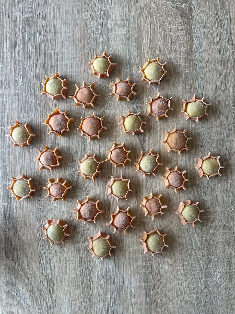 Tortellini "Pleasure in seven layers" Lasagne (V) Tortelli di zucca alla mantovana / Squash ravioli Mantua style (V) or (VG) Agnolotti alla piemontese / Meat agnolotti Piedmont style Fagottini alla montanara / Ravioli mountain style (V) or (VG) Sold Out Peas and love (V) Sold Out Veggies Ravioli with basil pesto/ Agnoli di verdure al pesto genovese (V) or (VG) Sold Out Chickpeas tortelli (V) or (VG) Sold Out Agnulot dal plin / Meat ‘agnolotti of the pinch’ Sold Out Supermassive black ravioli (V) Sold Out Pink tagliolini ‘la vie en rose’ (V) Sold Out 'Caramelle mimosa' with pecorino and herbs (V) Sold Out Tagliatelle 'Paglia e Fieno' with oyster mushrooms and Parmigiano-Reggiano fondue (V) Sold Out 'Balanzoni' from Bologna Sold Out Ravioli della mamma (V) Sold Out Valentine's Ravioli “Higher Love” (VG) Sold Out Pappardelle con ragù di salsiccia e porri / Pappardelle with sausage and leeks Sold Out